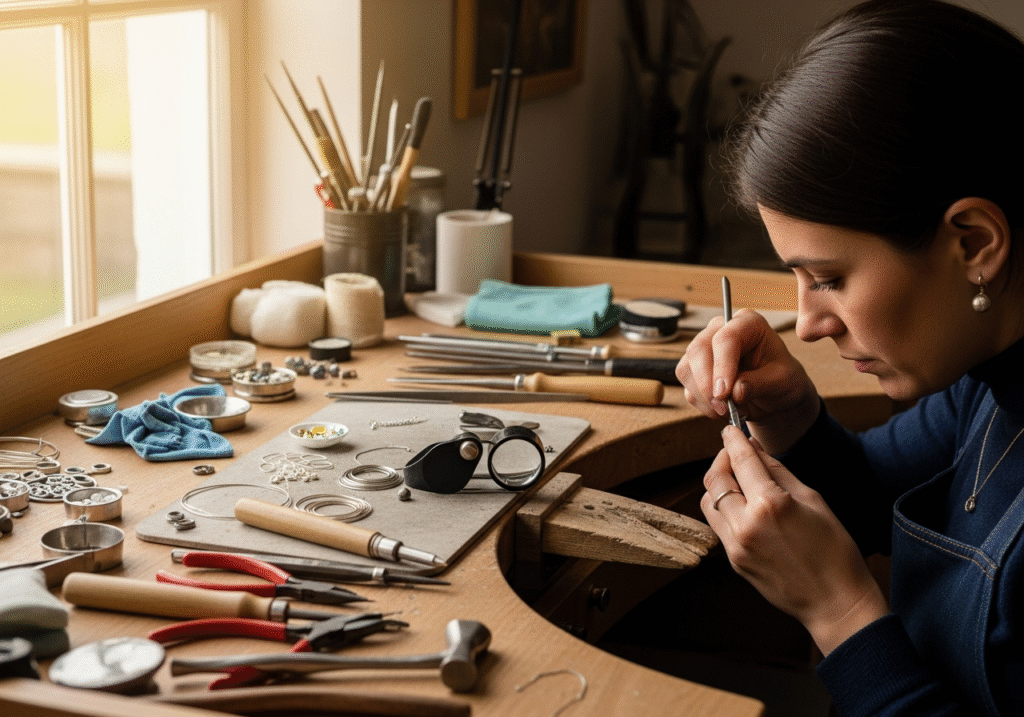 Each piece begins with a vision and transforms through careful manipulation of precious metals. Our artisans use time-honored methods including hand-forging, lost-wax casting, and intricate wire-working to create jewelry that tells a story.